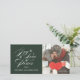 PEACE LOVE JOY HOLIDAY PHOTO CARD with GREEN. The words Love, Peace and Joy always describe the Christmas Holiday Message so well. You will love this beautiful Christmas photo card with a white script text and delicate snowflakes on a dark green background. Design by designer Elke Clarke© for Monogram Gallery.