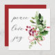 Peace Love Joy Holly Berry Red Holiday Card