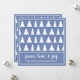 Send festive holiday cards featuring a white geometric tree pattern on a blue grey background. On a blue band across the bottom, it reads, "peace, love, & joy" in a white script font above a customisable name in a simple sans serif white font. Personalise it by adding a custom greeting, family name and/or the year in the sidebar. The tree pattern repeats on the back of the card.