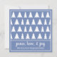 Peace Love Joy Modern Blue White Tree Pattern Holiday Card