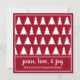 Peace Love Joy Modern Burgundy White Tree Pattern Holiday Card