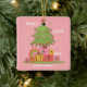 Peace, Love & Joy - Retro Christmas Tree in Pink Ceramic Ornament