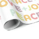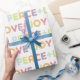 Celebrate the season with this Simple and timeless Joy Peace and Love themed holiday wrapping paper featuring stylish modern dotted typography in pastel tones (green, yellow, orange, light blue, pink, lilac, purple)