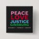 Our Peace Love Justice GINSBURG Square Button is a great way to honor the legacy of Supreme Court Justice Ruth Bader Ginsburg "the Notorious RBG", while sending a simple message: Peace Love Justice GINSBURG. Clean, modern design features text in pink, red, blue and green joined with black background. Available in a variety of sizes. Volume discounts available.