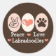 Show your love for your favourite breed of dog with our cute pink and dark brown peace symbol, heart and paw print design with the words Peace Love Labradoodles on t-shirts, tees, apparel and more labradoodle lover gifts for the whole family. Click here to see all of our cute Chrissy H.