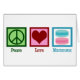 Peace Love Macarons. A cute macaron cookie baker card for a bakery shop featuring pretty pastel cookies.