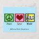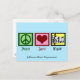 Beautiful musician postcard for a music school featuring a peace sign, heart, and a treble clef and musical staff. Cool PEACE LOVE MUSIC Christmas present for a composer, band director, or choir conductor.