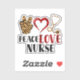 Celebrate the compassion and care at the heart of nursing with this cheerful "Peace, Love, Nurse" sticker. Featuring a hand in a peace sign, a heart, and a stethoscope, this illustration captures the perfect blend of kindness, medical dedication, and love for the profession. Ideal for nurses, nursing students, CNAs, and healthcare heroes who bring peace and healing to every shift. A lighthearted and meaningful tribute to those who live the nurse life with heart and purpose.
