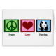 Adorable panda bear in a blue square next to a green peace sign and a red heart. I love this cute Christmas panda bears card. These are beautiful animal Christmas cards for animal activism.