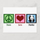 Adorable panda bear in a blue square next to a green peace sign and a red heart. I love this cute Christmas panda bears postcard. Beautiful animal card.