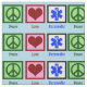 A green peace sign, red heart, and a blue medical symbol for an EMT. I love paramedic gifts. I know I am in good hands when I see the ambulance pull up.