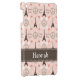 If you love paris, you'll adore this pink peace symbol, heart, flowers and Eiffel tower pattern in pink and brown with the words J'amie Paris on it. This Paris Eiffel Tower design can be personalised with your name on the PRINTED ribbon look design. Designed by Chrissy H. Studios, LLC. All Rights Reserved.