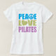 Peace Love Pilates...What else do you need in life? Perfect gift for any pilates addict. It doesn't matter if you're trained in pilates, you teach a pilates class at a local gym or spa, you do pilates in your living room while watching a dvd to live a healthy lifestyle, or you together a few times a week with friends for a pilates class...you're addicted to pilates! Funny gift idea for any pilates addict. Great for a pilates addict. Design features a heart and a peace sign. See our shop for more fun and unique Peace Love...shirts and gifts.