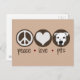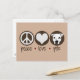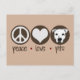Custom "peace, love, pits" postcard with a peace sign, a heart and an image of my American Pit Bull Terrier in bold round icons. Make sure everyone knows how you feel about this loveable, misunderstood dog breed with this modern postcard. Feel free to customise or change the background colour.