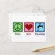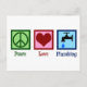 Cute Peace Love Plumbing postcards for a plumber that features a cool peace sign, heart, and a dripping water faucet.