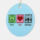 Peace Love Podcasts. A cute podcast lover gift for a podcaster who makes radio shows. It features a peace sign, heart, and pair of headphones with a microphone.