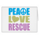 Peace Love Rescue...What else do you need in life? Perfect gift for any rescue addict. It doesn't matter if you're trained rescue professional (firefighter, police officer, emt, paramedic, nurse, doctor, etc.), you rescue dogs, cats, horses, or other animals from abuse and neglect and adopt them out of shelters and pounds, you do fundraisers for rescue organisations, or you just volunteer your spare time to help rescue organisations...you're addicted to rescuing! Funny gift idea for any rescue diva. Design features a heart and a peace sign. See our shop for more fun and unique Peace Love...shirts and gifts.
