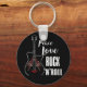 Peace Love Rock And Roll Guitar Retro Hippie Key Ring