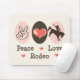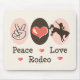 A peace symbol, heart and cowboy on a bucking horse in pink and dark brown on rodeo t-shirts, tees, stickers, buttons, mugs and more merchandise that make a cute rodeo gift for a fan or family member of a cowboy or cowgirl who participates in this exciting sport. Click on the following link to see all of our cute Chrissy H.
