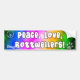 Colourful Peace, Love, and Rottweilers bumper sticker really stands out on your car. Our dog lover stickers have a rainbow tie-dye background with bone, paw print, heart, and peace sign. Fun and thought provoking statement!