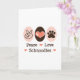Show your love for your favourite breed of dog with our cute pink and dark brown peace symbol, heart and paw print design with the words Peace Love Schnoodles on t-shirts, tees, apparel and more schnoodle lover gifts for the whole family. Click here to see all of our cute Chrissy H.