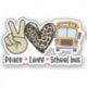 Spread positivity on the road with this "Peace, Love, School Bus" sticker! Featuring a hand peace sign, a leopard print heart, and a classic school bus, it's perfect for school bus drivers, educators, and back-to-school vibes.