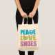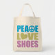 Peace Love Shoes...What else do you need in life? Perfect gift for any shoe lover. If you have 200 pairs of shoes in your closet, this design is for you. It doesn't matter if they're high heels, ballet flats, boots, sneakers, clogs, or rubber rain boots...you are addicted to shoes! See our shop for more fun and unique Peace Love...shirts and gifts.