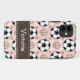 Show your love and passion for soccer with this cute and customisable repeating soccer ball, peace symbol and heart design in pink, black, whtie and brown. Personalise this soccer pattern with your name on the PRINTED ribbon look design. This makes a great gift for a girls soccer team player, coach or mum. Artwork © Chrissy H. Studios, LLC. All Rights Reserved.