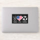 This vinyl sticker is great for a USA soccer fan. The design features a peace hand sign, an American flag in the shape of a heart and an soccer ball with the words "Peace Love Soccer".
