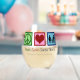 Peace Love Social Work wine glass. This cute social services department gift features a peace sign, heart, and a family. Personalise this present for a social worker.