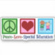 Peace Love Special Education Teacher sticker for someone who works with children who have special needs in a resource room or school. A cute special ed present featuring a peace sign, heart, and playing kids.