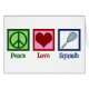 Peace Love Squash card for a player of the sport, featuring a peace sign, heart, and racquet.