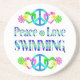 Show your love for swimming with this fun design with peace signs, hearts, flowers and the words - Peace Love Swimming. Makes a wonderful gift.