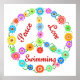 Share your love for swimming and enjoy this fun retro design with a peace sign made with colourful flowers and the words - Peace Love Swimming. Nice gift for a swimmer.