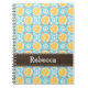 Show your love and passion for your favourite sport with this cute and customisable repeating tennis ball, peace symbol and heart design in aqua blue, yellow and brown. This custom tennis spiral notebook cover can be personalised with your name. This makes a fun gift for a girls or women's tennis player, tennis mum or coach. You can use it as a diary, journal or appointment book. It is equally great for home office supplies or back to school use. Original artwork and design © Chrissy H. Studios, LLC. All Rights Reserved.