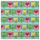 Teal tennis fabric covered with peace signs, hearts, and tennis balls.