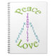 The words Peace, Love, Tranquillity, Kindness and Patience, printed on a Notebook.
