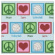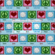 Cute blue volleyball fabric featuring a peace sign, heart, and a ball for your favourite sport. Peace Love Volleyball fabric for a team or coach.