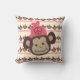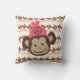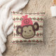 Peace Monkey pillow featuring lots of little brown monkeys with pink hats and one big monkey with a pink hat bearing a peace symbol.