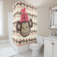 A cute pink, white, brown, and tan shower curtain with lots of cute monkeys with pink hats with peace symbols!