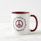 The Peace symbol is in the centre with the words Justice, Simplicity, Equality, Unity, Peace are written in a circle around the peace symbol.