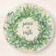 Peace on Earth Boxwood Wreath Holiday Coaster