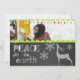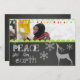 A chalkboard look background with cool white text that reads "Peace on earth" on front and "Joy to the World" on back with snowflakes, a white silhouette deer, and colourful tree lights with areas you can customise with your names and photo! This fun, colourful holiday photo card is a must have!