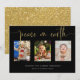 Peace on Earth Christmas 3 Photo Collage Glitter Holiday Card