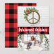 Warmest wishes, buffalo plaid Christmas Card with Peace sign wreath for a very boho holiday