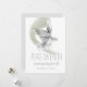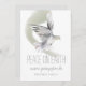 Elegant Peace on Earth Christmas card features a dove flying in the sky. The Christmas card is designed in soft muted shades of watercolor grey. A soft watercolor wash represents the sky. Peace on Earth is written in a modern and sparse font. Season's greetings follows in a companion script font and your family name follows. All text can be changed to send your own personal holiday message.