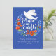 A pretty Christmas card featuring a dove in a floral wreath with the words peace on Earth. The Christmas card is designed in royal blue,white and red. Personalize it with your name, the year, a short message and your family photo on the back of the card. Designed for you by Blackberry Boulevard.