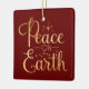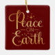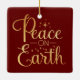 Peace on Earth Gold Script Red Holiday Ceramic Ornament