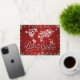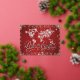 The Map of the world in diamonds and Beautiful FOIL typography 'Peace on Earth' Holiday message - background in holiday Red and Stunning elegant sparkly snowflakes that surround this ruby red highlighted background with fancy script text - Personalised with your message on the back and signature NOTE: NO real diamonds/gemstones are on this card - the are artistically created to appear real
