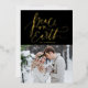 Peace On Earth Script Black and Gold Foil Holiday Card